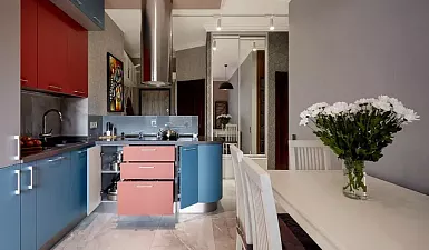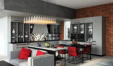 Самыми удобными считаются модульные кухонные гарнитуры, изготовленные на заказ. Когда можно индивидуально определиться с размерами и количеством шкафов, их формой и наполнением. С помощью модульной кухни можно визуально разделить просторное помещение на несколько зон. Для этого подходят модели с барными стойками и островами.