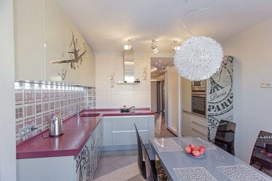 Над обеденной зоной тоже потребуется дополнительная подсветка. Для этого можно использовать светильники на подвесах, люстры, споты. Выбор во многом зависит от дизайна помещения.