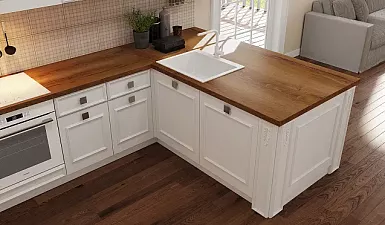Компания «Кухонный двор» производит гарнитуры из качественного МДФ, натуральной древесины дуба, бука и ясеня. Наша мебель отличается экологичностью и безопасностью для здоровья, мы предоставляем на нее гарантию качества, которая действует 12 лет.