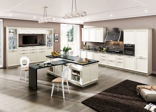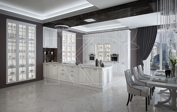 Белые классические кухни в ассортименте фабрики «Кухонный двор»