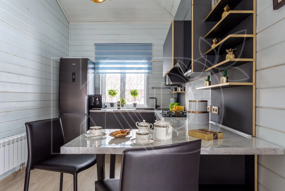 - Пыль – главный враг поверхностей с глянцевым покрытием. По факту любое фото кухни под неудачным ракурсом продемонстрирует пыль. И на темной матовой поверхности она будет визуально куда заметнее.