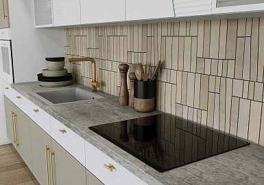 Если вы выбираете изготовление кухни на заказ, внимательно отнеситесь к выбору фурнитуры. Она тоже станет частью пространства, подчеркнет красоту даже недорого ремонта. Для плоских однотонных фасадов можно подобрать эффектные ручки, которые будут смотреться как гармоничный элемент декора.