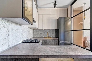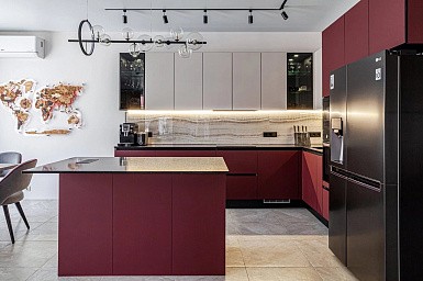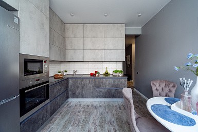 Если стены кухни не позволяют установить стандартный комплект мебели, рекомендуем заказать кухню по индивидуальным размерам. В этом случае дизайн-проект будет реализован с учетом особенностей помещения. Например, ниши будут использованы для установки полок и бытовой техники.