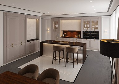 В больших помещениях кухня и гостиная часто оказываются совмещенными. Визуально отделить одну зону от другой можно с помощью островной конструкции, барной стойки или стеллажа. Зонирование с помощью кухни на заказ от производителя технически выполнить гораздо проще. Дело в том, что комплект будет изготовлен с учетом архитектуры пространства.
