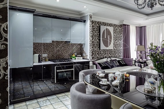 Особый шик – глянцевое декорирование фасадов или других элементов кухни. Это когда свет отражают лишь отдельные элементы. Обычно их изготавливают из самых современных материалов, например, из лакированного МДФ премиум-класса. Исходя из этого можно выделить следующие преимущества решения: