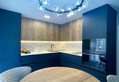 Синий кухонный гарнитур – это необычное и стильное решение для дизайна кухни. Синий цвет ассоциируется с уверенностью, загадочностью и глубиной.