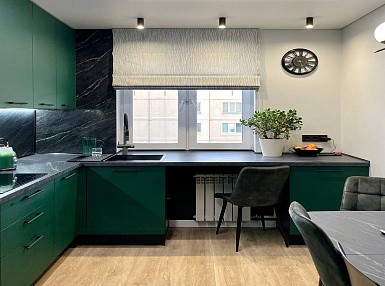 Чтобы создать зеленую кухню, можно использовать разные оттенки зелени и миксовать их с нейтральными цветами, например, белым или серым. Отличным решением будет комбинация зеленых стен и фасадов, белой столешницы и деревянных элементов.