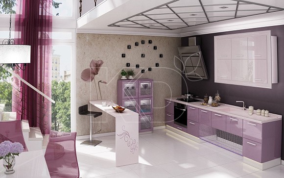 Серо-фиолетовая кухня