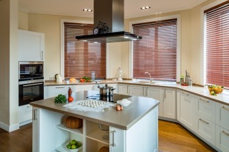 Гарнитур с островом или полуостровом идеально встроится в квартиру-студию. С его помощью можно разделить пространство на несколько зон – обеденную и гостиную.