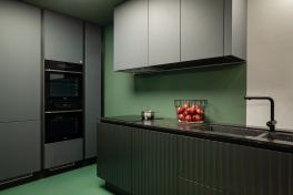 Кухня в сером цвете с фрезерованными фасадами (Кухня Патриция + Эмма)